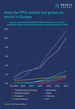 It is also important to note that, as has been proved by Rezolv’s recent deals with T-Mobile Czech Republic, Slovak Telekom, CE Colo Czech Republic, Bekaert and Ardagh Glass Packaging-Europe, the virtual PPA (VPPA) model has removed national borders as a barrier to renewable energy procurement within the EU.