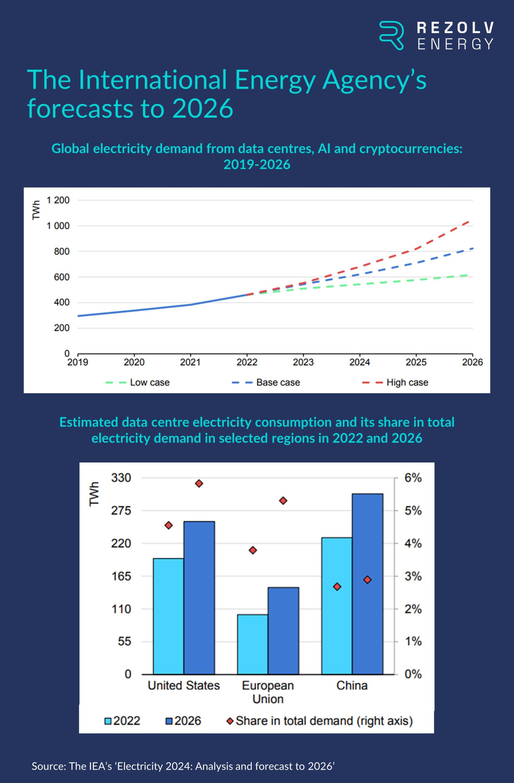 The concern now is that the additional computational power needed for the rapid growth of Artificial Intelligence models and their applications will only accelerate the already soaring electricity demand. On average, a ChatGPT query requires nearly 10 times as much electricity to process as a Google search, and the IEA estimated earlier this year that electricity consumption from data centres, AI and the cryptocurrency sector could double by 2026. Having consumed an estimated 460 TWh in 2022, the IEA forecasts that data centres’ total electricity consumption could reach more than 1,000 TWh in 2026, roughly equivalent to the electricity consumption of Japan: